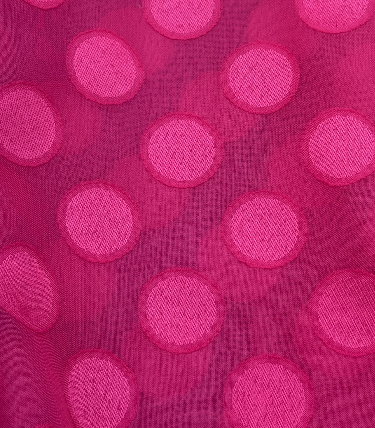 Tela flamenca fucsia con lunar a tono en relieve.