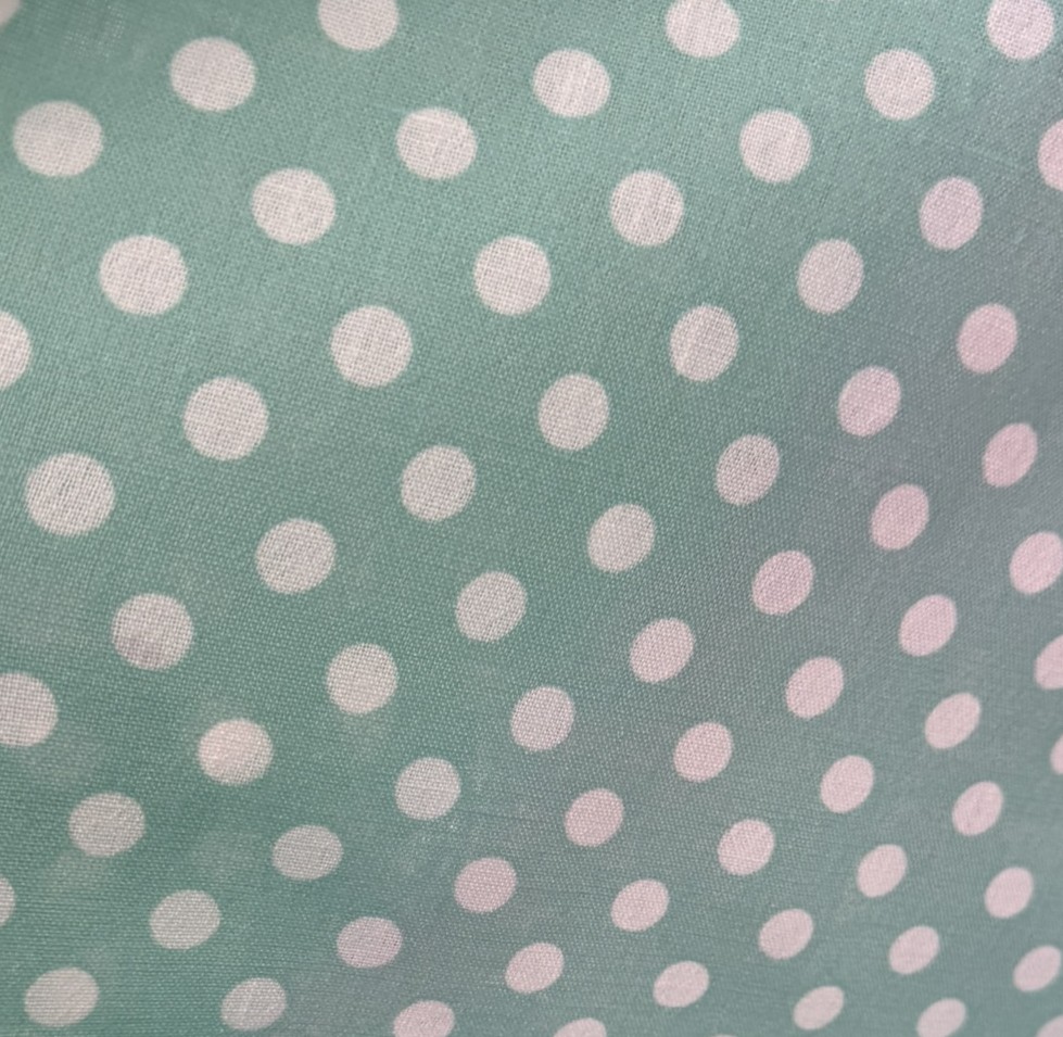 Tela flamenca verde agua con lunar blanco.