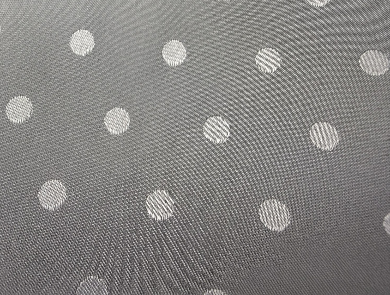 Tela de flamenca con elegante estampado de lunares blancos sobre fondo gris perla, una combinación sobria, refinada y muy actual dentro de la moda flamenca. El tono gris aporta modernidad y distinción, mientras que el lunar blanco mantiene la esencia tradicional del traje de flamenca, logrando un equilibrio perfecto entre clasicismo y tendencia.
