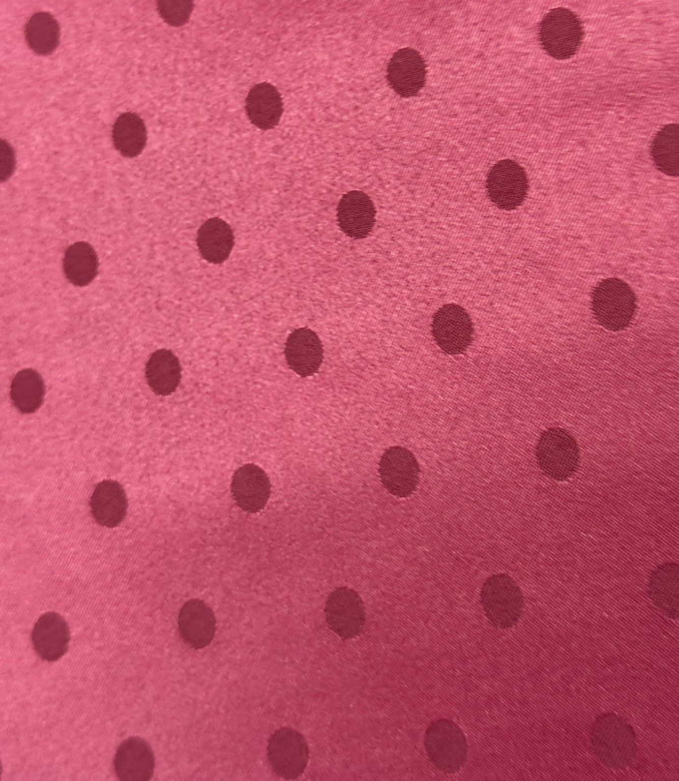 Tela de flamenca con estampado de lunar clásico en tono burdeos oscuro, repartido de forma uniforme sobre un fondo buganvilla intenso y elegante. Una combinación muy flamenca, con fuerza y profundidad, que realza el diseño tradicional del traje aportando carácter y presencia.
