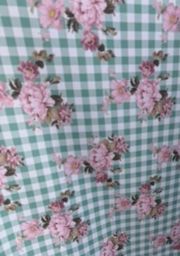 Tela de flamenca con estampado de cuadro vichy verde agua combinado con ramilletes de flores en tonos rosados, una mezcla muy alegre y femenina que aporta frescura y un aire muy primaveral a cualquier diseño.