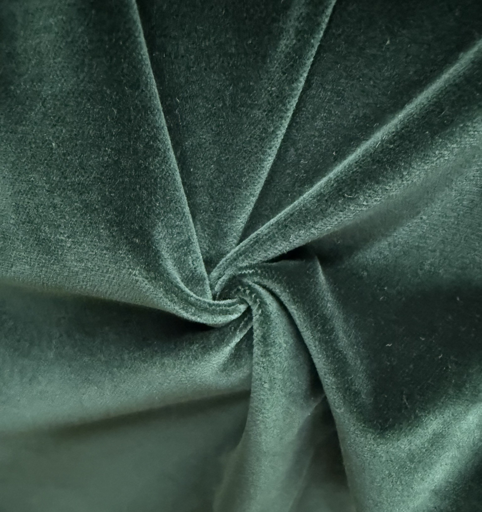 Su acabado tiene un brillo moderado que se activa en los pliegues, creando contrastes sutiles entre luces y sombras. No es un verde vibrante ni esmeralda llamativo; es más contenido, más natural, más fácil de integrar tanto en moda como en decoración.